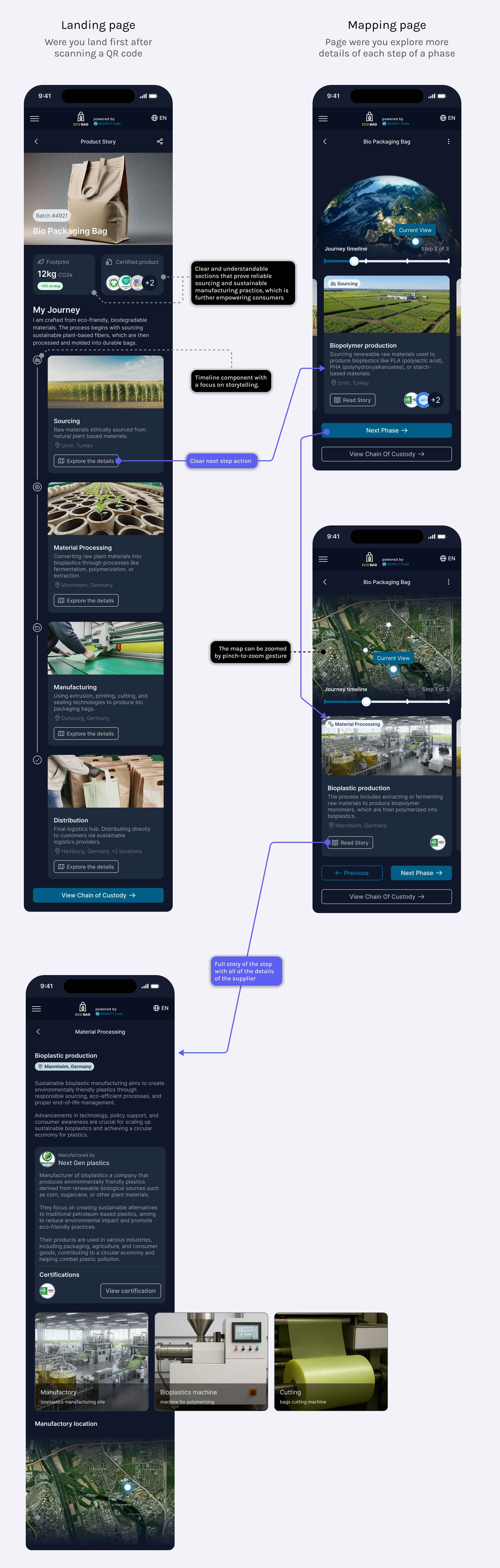 After a few alignments and iterations, I arrived at the final polished design, which seamlessly integrates the storytelling component with the more technical and in depth supply chain analysis.